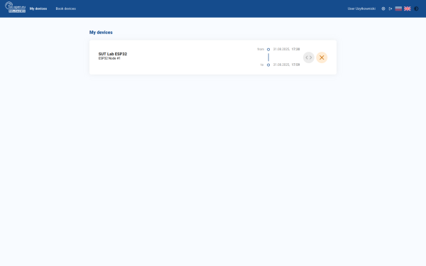 3. Select the device from the list. Note that you may have access to multiple laboratories, devices, and technologies. Each device represents specific features, so check carefully with the documentation and scenarios you will implement to determine the necessary hardware components for your lab work. In case of doubt, contact the supervisor. A sample list with ESP32 laboratory devices is present in the figure 6.