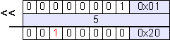 REG = 0x01 << 5; // Ergebnis REG = 0x20