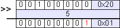 // Annahme REG = 0x20 unsigned char x = REG >> 5; // Ergebnis x = 0x01 (or simply 1)