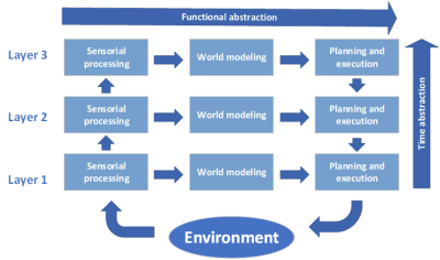• Deliberative layer – strategic control, implements strategic planning and mission control tasks, like estimating how far the robot is from achieving the mission objectives. In many cases, route planning is implemented in this layer. This layer usually is associated with the intelligence of the system and the main indicator of the level of autonomy.