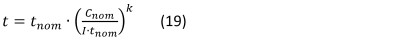 As previously noted, the rated nominal capacity of a battery is given at certain discharge rate. For lead-acid batteries the capacity is often given for 20-hour discharge rate. For example, if a battery is rated 17Ah at 20-hour rate, then the discharge current is just 0.85A. If the discharge current is larger i.e. the rate is higher then logically the discharge time decreases. However, in case of lead-acid batteries the discharge time decrease is not proportional to the discharge rate increase. As the current is increased the discharge time decreases even faster – the available capacity decreases. This phenomenon is described using empirical Peukert’s law given in equation x, where Cnom is the nominal rated capacity at nominal discharge time tnom (in hours), I is the current at which the battery is being discharged, t is the discharge time at given discharge current I and k is the Peukert constant which for lead acid batteries is in the range from 1 (an ideal battery) to 1.5 depending on the battery technology (flooded, gel, AGM).
