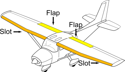 Many drones (particularly bigger ones) require additional surfaces, helping, i.e. to slow down or to increase lift (Figure ##REF:planectrlsurfaceadv##):