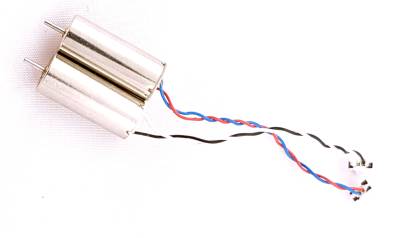 Brushed motors use an internal switching system to the alternate current direction, thus changing the magnetic field. It is pretty easy to recognize the brushed motor as it has just two wires (brushless has three). Speed can be controlled via control of the energy delivered, i.e. changing voltage (directly or rather via PWM duty cycle). Brushed, coreless motors are designed to rotate in one direction. This is the reason why brushed motors are marked CW (Clock-wise) and CCW (Counter-wise). While some of them can operate in other directions, it is not very efficient. Because brushed motors use the brushed switch inside, named commutator, that uses friction, it wears out over time thus brushed DC motors popular only in the smallest, miniature drones. Brushed motor construction is not scalable in terms of some diameter; the weight to torque ratio is rapidly decreasing. Because of the mechanical, friction-based, commutator construction, brushed DC motors used to be considered less reliable than brushless ones. The advantage is simplicity on powering and speed control, usually using a single MOS-FET transistor and PWM.