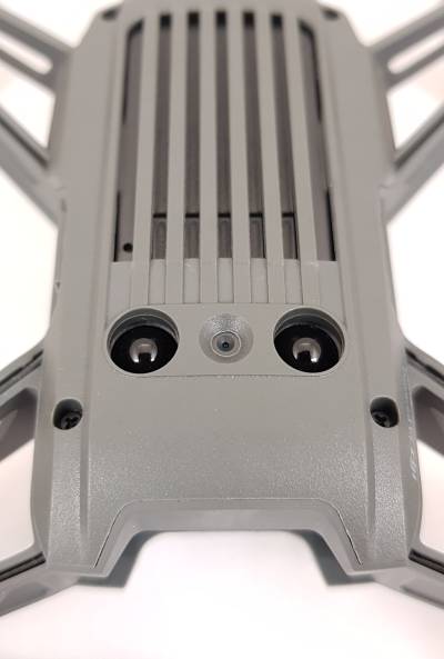 Stabilization cameras provide the ability to keep drones horizontally in one place, thanks to optical stabilization and image processing. It can be as simple as using sensors known from optical mouses that obviously have many limitations and as complex as advanced image processing with the detection of the characteristic objects and feature extraction like corners, lines, and similar. The modern image processing also delivers the ability to let drones perform optical-based SLAM: Simultaneous Location And Mapping, generating 3D environment scene ad-hoc while flying. Obviously, it is rather for larger drones as requires additional energy thus larger battery, however, i.e. miniature brushed drone DJI Tello, successfully uses front and down-facing cameras for indoor stabilization (Figures 37 and 38) - the integrated image processing and flight control is implemented using Intel Movidius Myriad chipset. Optical stabilization requires an adequate level of light.