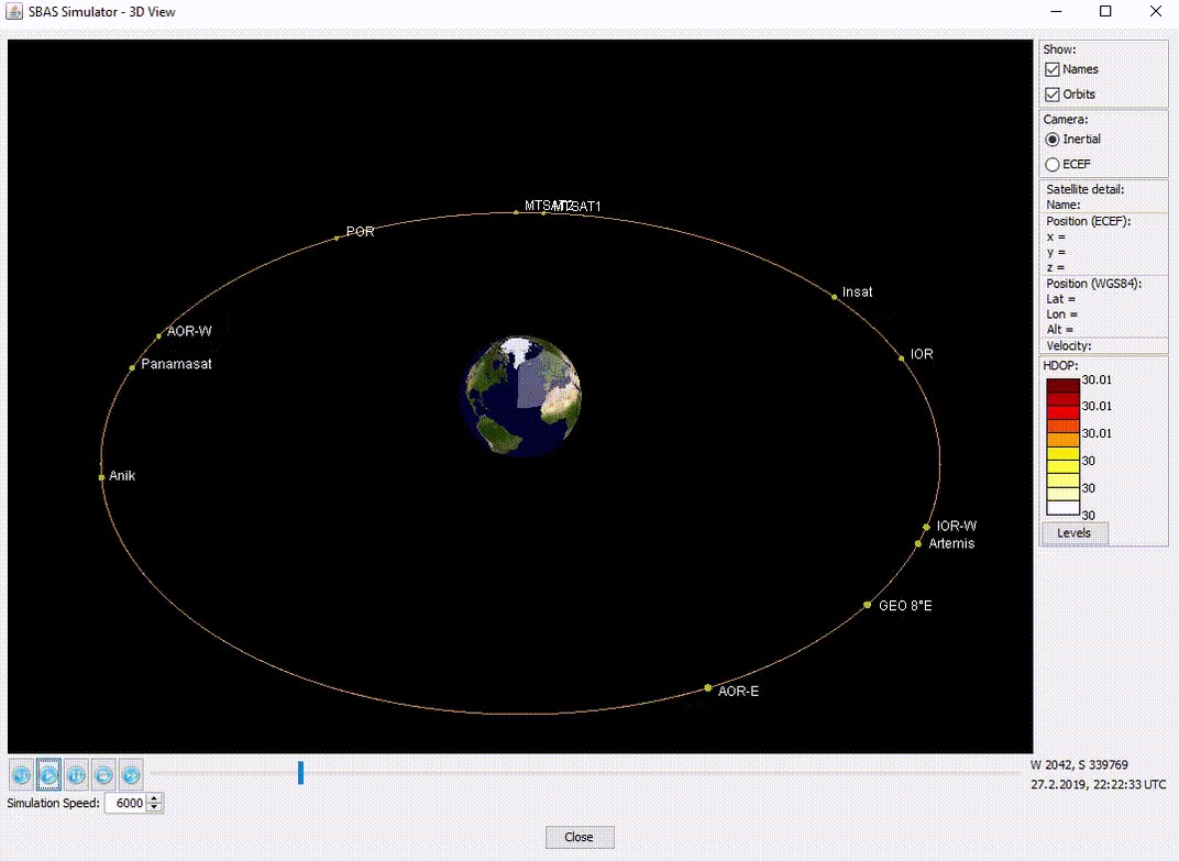 Composed of three geostationary satellites broadcasting corrections and integrity information for GPS satellites in the L1 frequency band (1575,42 MHz). This space segment configuration provides a high level of redundancy over the whole service area in case of a geostationary satellite link failure. EGNOS operations are handled in such a way that, at any point in time, at least two of the three GEOs broadcast an operational signal.