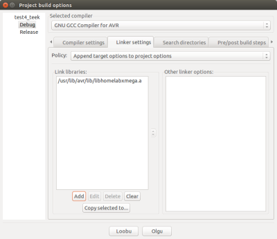 It is also necessary to install the library. Typically AVR libraries are located in the folder /usr/lib/avr It is necessary to own administrator rights to add a folder for the new library.
