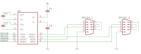 The module is equipped with two DB-9 connectors, which are routed through the TTL converter MAX232.