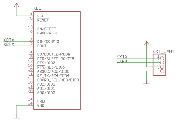 Two 2 mm socket rows are intended for the wireless module connection, e.g., Zigbee, Bluetooth or GPS. Only UART signals and 3.3 V power lines are connected as shown on the table below.