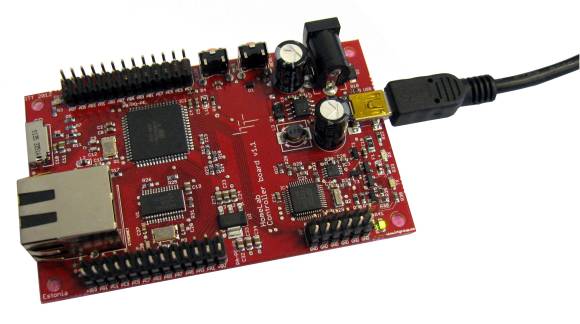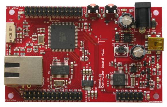 The main module of the HomeLab is a controller development board (controller board) equipped with the AVR ATmega2561 microcontroller. In addition to the microcontroller, the board consists of several peripherals, voltage stabilizer, connectors, JTAG programmer, Ethernet, SD memory card slot. The controller board has the following features: