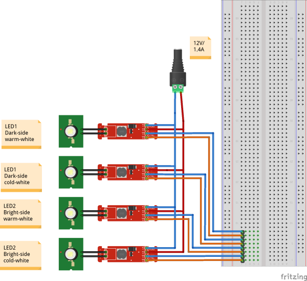 | Channel 2 | On the board | Input | LED2/dark side warm-white |