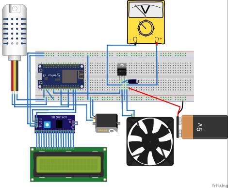 There are two actuators (fan, servo) and LCD display.