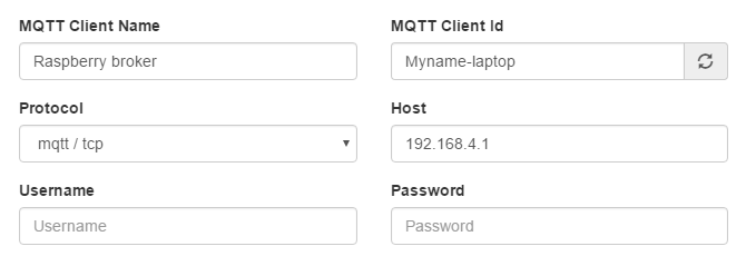 If you downloaded and flashed the Raspberry image file that we provided then follow the picture below to configure your MQTTBox broker settings.