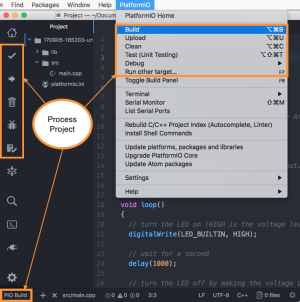 • Run Build (PlatformIO > Build) and you should see green “success” result in the building panel