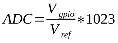The low-level ADC register-based operations use the following formula to obtain an ADC value (figure 3, based on the input value Vgpio and the reference value Vref).
