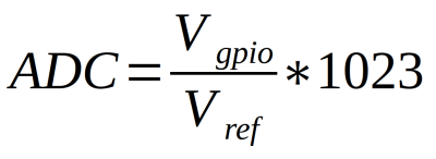 The low-level ADC register-based operations use the following formula to obtain an ADC value (figure 3, based on the input value Vgpio and the reference value Vref).