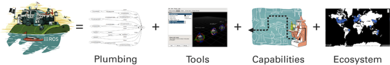 Ecosystem: ROS is a big ecosystem. Software is organized in packages so you can easily install and use them. Ros provides the entire software distribution that includes many tutorials and documents that you can find online.