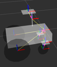 In order to modify the robot model both in the simulation and in Rviz, the robot's URDF file must be changed. This is necessary if we want to change the configuration of the robot, for example by adding sensors to the robot. Every element on the robot is assigned to a specific link. The relation between these links is defined under the joint tags.