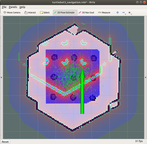 $ roslaunch turtlebot3_navigation turtlebot3_navigation.launch map_file:=$HOME/map.yaml