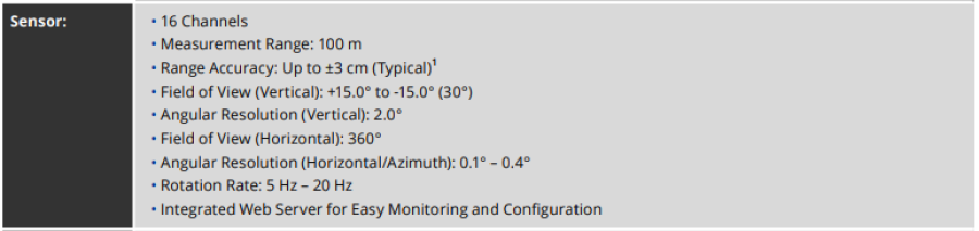 Lidar allows laser beams to obtain a point cloud from the surroundings, which is very useful for autonomous navigation. The more channels the lidar has and the higher its resolution, the more accurate the point cloud will be.
