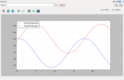 The rqt_plot tool is used to visualize the subject data over time. With this tool, you can display the values ​​of the messages as a graph. This tool can be used, for example, to visualize sensor values. Turtles simulator publishes the x and y coordinates of a robot in /turtle1/pose/x and /turtle1/pose/y. Let's try to display these topics on the graph.