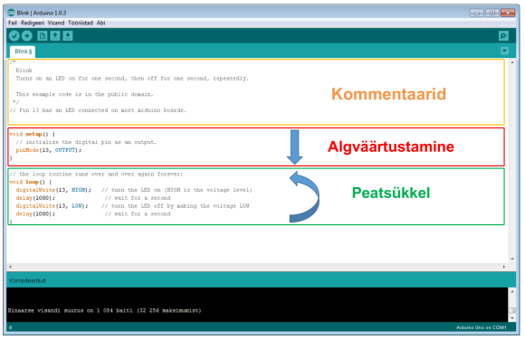 void setup() { Serial.begin(9600); // Jadapordi algväärtustamine kiirusel baud 9600 }