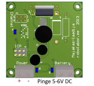 Majakas vajab alalispingelist toidet 5V DC, mis tuleb ühendada kruviklemmi “Power” külge. Kanali valimine toimub jumper'iga, mis ühendatakse piikriba “Channel” külge vastavalt kõrvalolevale tabelile. Nt kanali 2 valimiseks tuleb ühendada jumper viikude 3 ja 5 vahele. Infrapuna LED'ide kiirgustugevust saab vajadusel reguleerida potensiomeetriga RT1, mis asub kanalivaliku viikude kõrval.