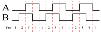 Võlli pöörlemissuuna kindlakstegemiseks on vaja lisada teine optopaar. Kui optopaarid on asetatud nii, et tekiks 90 kraadine faasinihe nende signaalide vahel on tegemist kvadratuur väljunditega. Optopaaride signaalide olekudiagramm on toodud juuresoleval pildil, kus optopaaride väljundeid on tähistatud A ja B. Väljundid loetakse tarkvaraliselt, tavaliselt katkestuste vahendusel, mis genereeritakse signaali tõusva või langeva frondi korral. Pöörlemissuuna saab määrata väljundkoodide võrdlemise abil. Näiteks, kui viimane väärtus on 00 ja uus väärtus 01, siis võll on pöördunud ühe poolsammu võrra kellaosuti liikumise suunas.