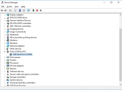 Kindel COM pordi number tuleb järgi vaadata Device Manager aknast. Igal masinal võib see number erineda.