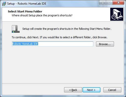 Kui paigaldus on lõppend vajutada Finish nuppu. Töökeskkonna avamiseks avada töölaua otsetee või Start menu → Windows 7 All Programs Windows XP ProgramsRobotic HomeLab IDE.