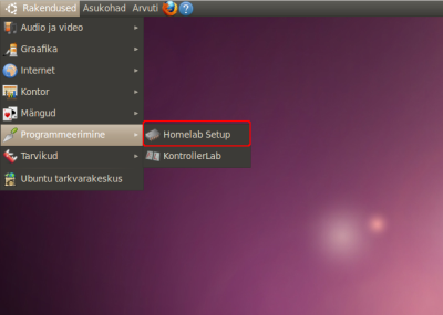 Kodulabori seadistamise programmi kävitamiseks valige menüüst Rakendused → Programmeerimine → Homelab Setup.