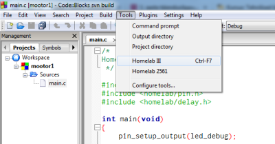Kodulaborile programmi pealelaadimine ei käi Run käsuga, vaid menüüst Tools→HomeLab III