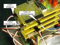 Edasi tuleks ühendada ultraheli- ja infrapuna kaugusandurid ning palliandur. Infrapuna kaugusanduri ja pallianduri jaoks on tarbis servode pikenduskaablit. Täpsemalt on pesad näidatud piltidel: