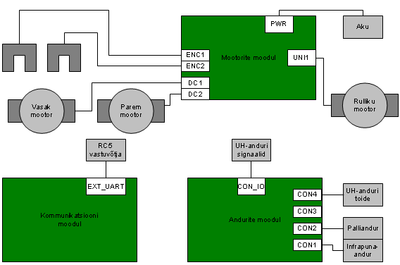 Roboti ehitamiseks kasutatakse Kodulabori täiskomplekti, mis sisaldab järgnevaid mooduleid (eraldi plaate):