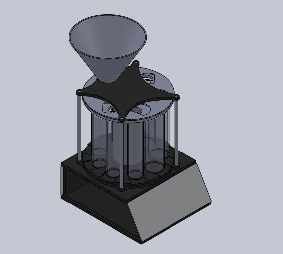 Müntide eraldamiseks otsustasime kasutada eraldusplaate, kus alumisele plaadile on puuritud euromüntide diameetritele vastavad augud ning ülemine plaat veab münte nende aukude kohal. Augud on järjestatud väiksemast suuremaks, selleks et vältida väiksemate müntide kukkumist suurematesse aukudesse.
