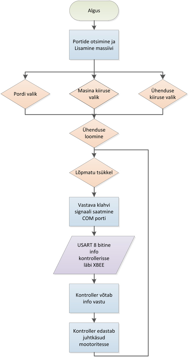 Lisaks sellele vastutab andmeside ja mootorite eest spetsiaalselt meiel loodud arendusplaat.