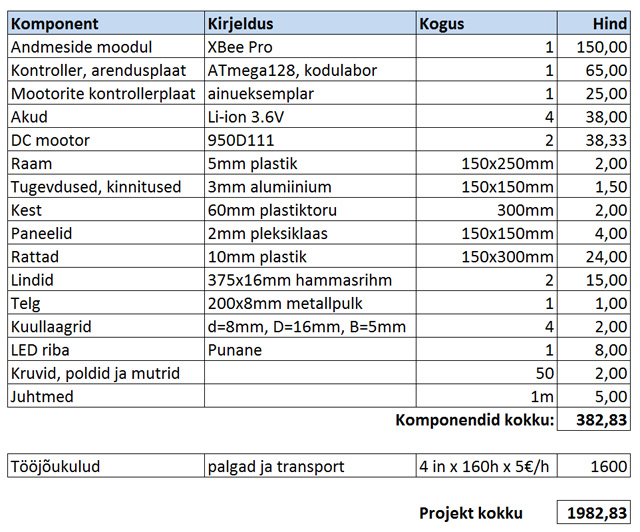 Roboti konstruktsiooni loomisel lähtusime eelkõige tootmisvõimalustest ja olemasoelvatest komponentidest.