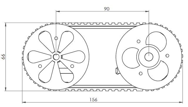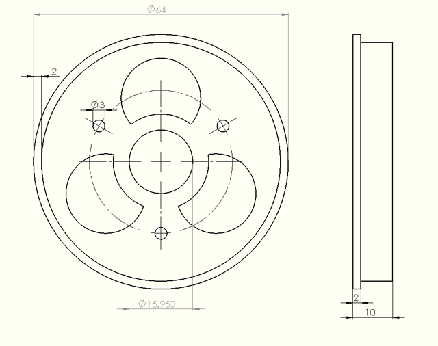Rataste loomisel mängis peamist rolli roomikute laius - 16mm. Meie CNC pingi puhul tähendas see seda, et rattaid ei ole võimalik toota ühes tükis. Seega sündis idee teha rattad kahest identsest poolest ja nad poltiega omavahel kokku tõmmata. Erinevatel telgedel on rattad erinevad. Mootori võllile kinnitub selline ratas: