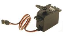 Les Servomoteurs sont souvent utilisés dans les modèles radio-contrôlés (RC), et sont très utiles dans beaucoup de cas d’application de petite robotique parce qu’ils sont très compacts et très peu chers. Un servomoteur RC est composé d’un moteur DC, d’une boite de vitesse, d’un capteur de retour de position (habituellement un potentiomètre) ainsi que des électroniques de commande. Le servomoteur RC peut être contrôlé par un signal externe à large impulsion de modulation (PWM). Si un signal rencontre le servomoteur timingrequirements RC, cela défini habituellement une position cible d'entrée pour l’électronique de commande du servomoteur. Les électroniques du servomoteur comparent la position de l’arbre avec la position en entrée, en essayant de trouver la position de l’arbre qui correspond. Le signal de contrôle de la position est un signal sinusoïdal (d’onde) au carré continu, tel que dans la figure. Les servomoteurs RC (radio-contrôlés) sont des actionneurs très courants en robotique et en construction de modèles. Les servomoteurs RC sont composés d’un petit moteur DC, d’un engrenage de réduction et d’un matériel de contrôle logique. Habituellement le rotor du servomoteur bouge jusqu’à une certaine position en essayant de conserver cette position. La position du rotor dépend du signal de contrôle reçu par le servomoteur. En fonction du type de servomoteur, l’angle de rotation maximum du moteur peut changer. Les Servomoteurs qui tournent de manière constante sont rares. Dans ce cas le signal de contrôle ne détermine pas l’angle de révolution mais la vitesse de rotation. Les Servomoteurs “hack” sont bien plus courants. Cela rend la position qui détermine le servomoteur vers une rotation constante. This makes the position determining servo motor to constantly revolving servo Dans ce cas le potentiomètre de retour de position est remplacé par deux résistances fixes et le résistor mécanique qui empêche toutes les rotations est retiré de la boite de vitesse. Une caractéristique très importante du servomoteur est son ratio poids-puissance.