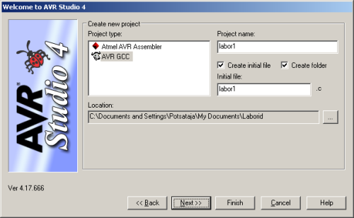 NB! Si AVR GCC est manquant dans la liste du compilateur, c’est qu’il n’est pas correctement installé. Dans ce cas le logiciel WinAVR doit être réinstallé avant de commencer d’écrire le code source en C.
